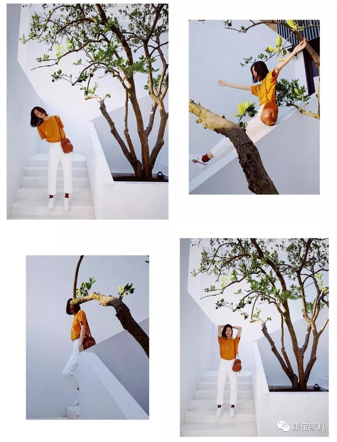 这个楼梯间的作用可谓多样。平时就在工作室中肩负“生命力担当”的作用,在各种黑白极简线条中点缀出生命的温度。大表姐拍写真时有着“背景板”的功用,普通的生活照也能分分钟变大片。